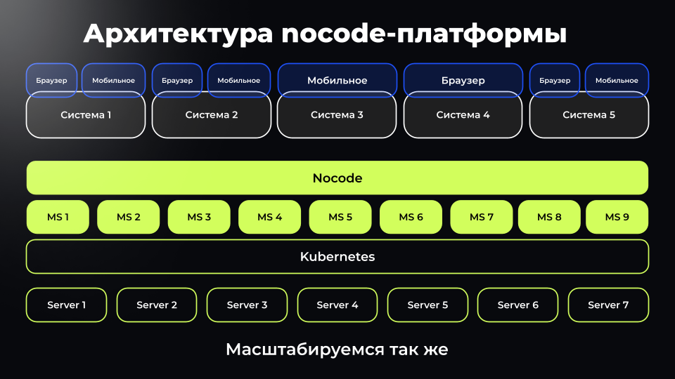 → В Kubernetes запускаются микросервисы, из которых состоит nocode-платформа.