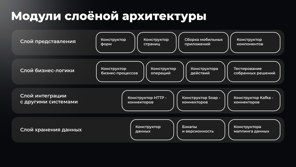 Архитектура платформы состоит из четырёх слоёв: